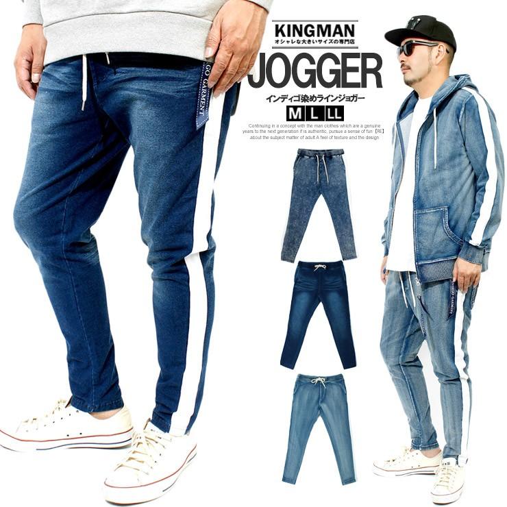 ジョガーパンツ メンズ カットデニム サイドライン スリム ストレッチ