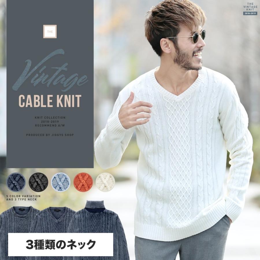 Vネックケーブルニット ニット セーター メンズ ケーブルニット