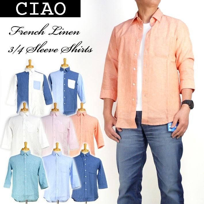 Ciao チャオ フレンチリネン 7分袖シャツ メンズ 夏に涼しい麻のシャツ