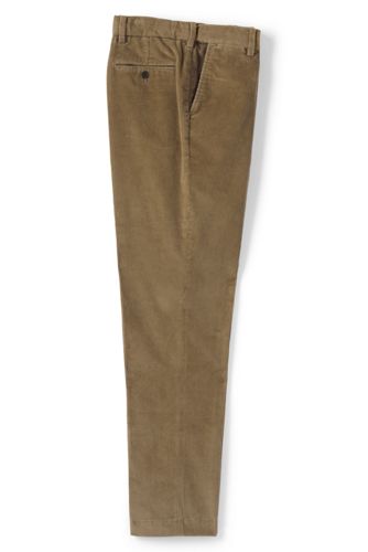 メンズ 10ウェール ストレッチ コーデュロイ パンツ 快適ウエスト プレーン ランズエンド